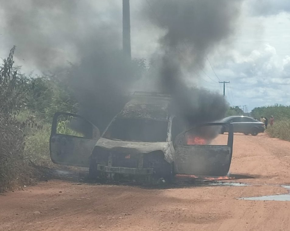 Ambulância pega fogo e fica completamente destruída em Santa Maria da Boa Vista; ASSISTA