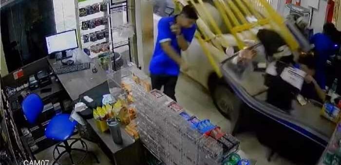 Por um fio: Funcionário consegue escapar segundos de carro invadir distribuidora; veja vídeo