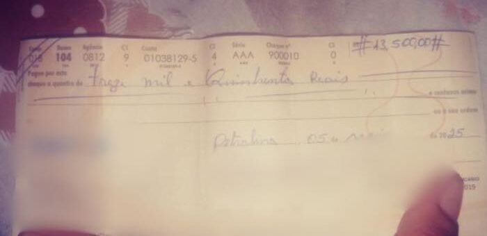 Seguidora do Blog encontra cheque de R$ 13,5 mil em Lagoa Grande e procura o dono