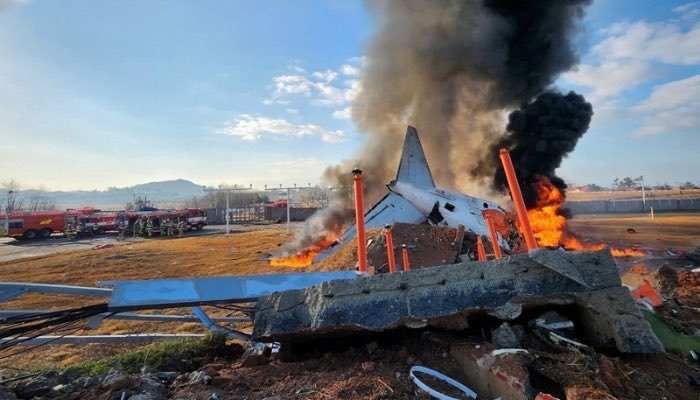 Uma aeronave transportando 175 passageiros e seis tripulantes saiu da pista, bateu em um muro do Aeroporto Internacional de Muan, na Coreia do Sul, e explodiu no domingo (29), noite de sábado no Brasil.