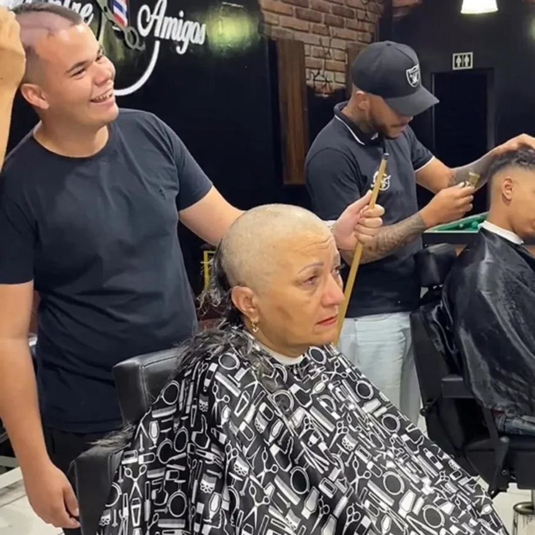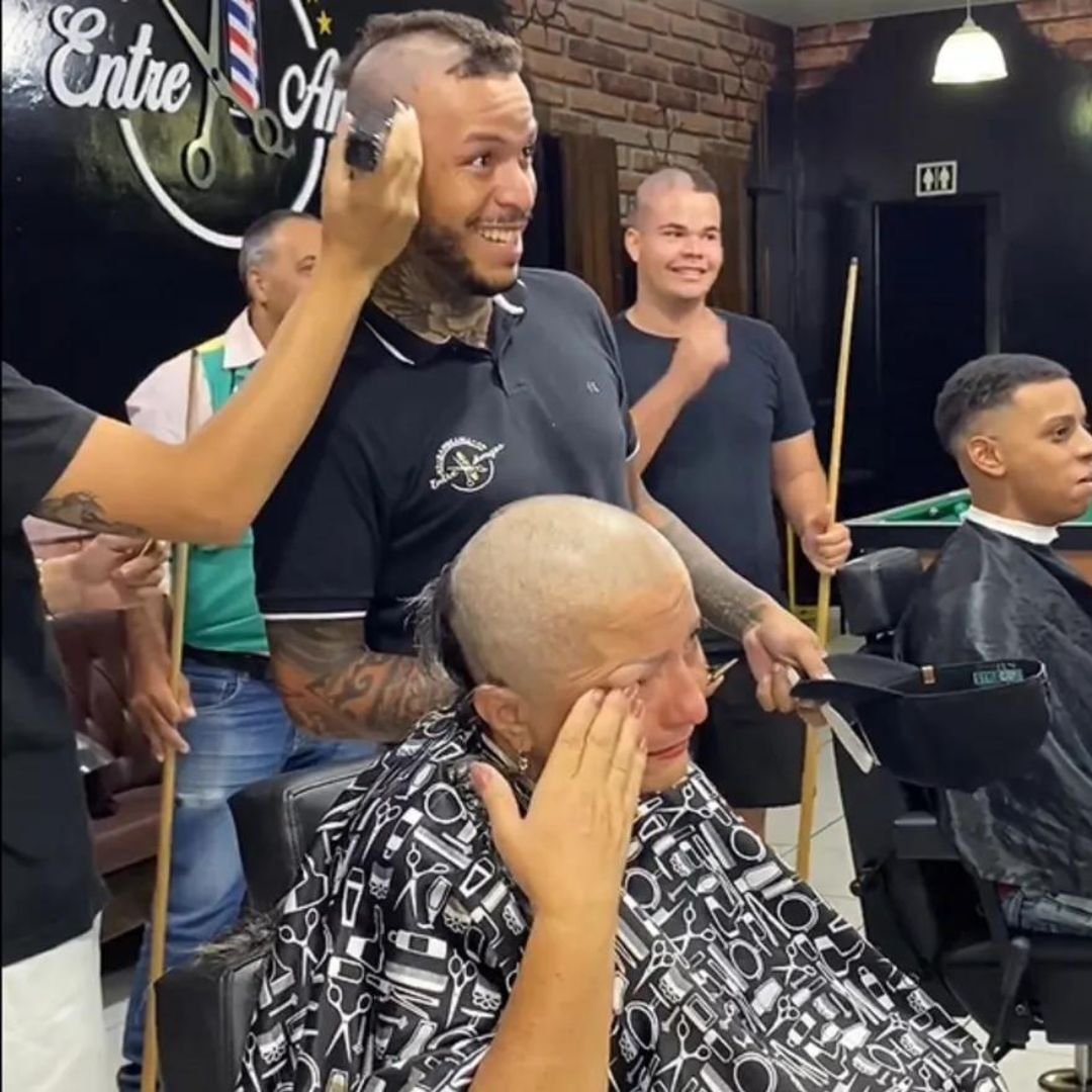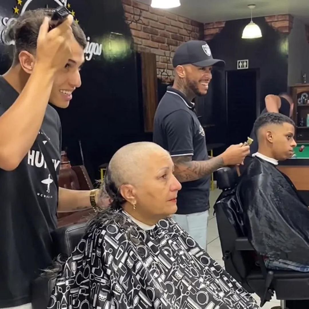 “Antes de ele chegar à barbearia, eu já tinha falado com os outros meninos que a gente ia raspar o cabelo, ele não sabia. Na hora que ele começou a raspar o dele, o Brito, nosso amigo, raspou também e ele ficou surpreso. Falei para ele que era para raspar o meu também e começou a chorar. A mãe dele não aguentou também”, relatou o sócio Carlos.