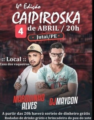 A 4º Caipiroska que estava programada para acontecer no próximo dia 4 de abril no distrito de Jutaí foi adiada devido aos acontecimentos sobre a pandemia do Coronavírus. Segundo Iure, uma nova data será marcada, aguardem!