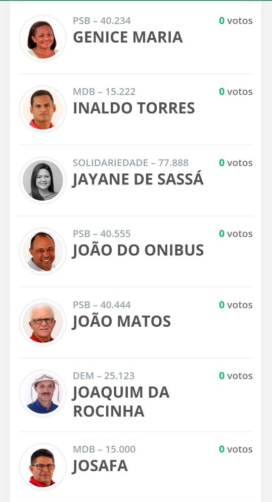 Veja abaixo a lista completa com nome e números dos candidatos ao cargo de vereador.