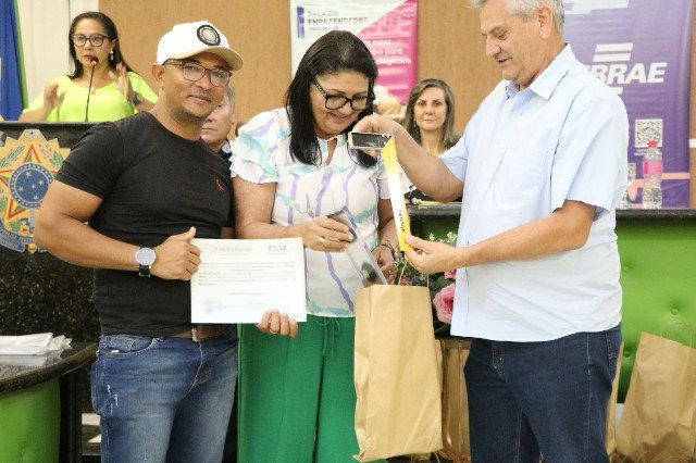 A solenidade de conclusão contou com presença do Prefeito Vilmar Cappellaro, acompanhado da primeira-dama, Claudia Cappellaro; da Secretária de Assistência Social, Eliene Neri; dos secretários Ademar Nonato (SEIMA), Olavo Marques (SEGOV) e Ítalo Ferreira (SESAU); da Coordenadora Pedagógica do Senai, Bruna Nascimento; do representante do Sebrae, Charles Wilton; dos vereadores Josafá Pereira, Mantena, Rosa Farias, Lindaci Amorim e Fernando Angelim; dos coordenadores da Sala do Empreendedor, Hermes Amorim e Anadja Barros; e outros colaboradores.