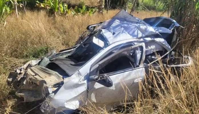 - Após eles serem ejetados, o veículo continuou capotando por mais 300 metros morro abaixo até parar, todo destruído.