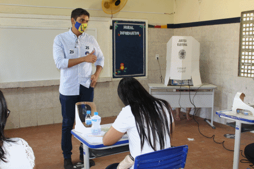 O candidato à prefeito de Lagoa Grande, Henrique Diniz (DEM), votou agora a pouco na seção de Nº 055, na Escola Estadual Santa Maria na Praça dos Estudantes, centro da cidade. Diniz estava ao lado da candidata a vice-prefeita, Iara Evangelista (DEM), que votou pela manhã na Escola Municipal Gilvanete Gomes, no Sítio Rocinha.