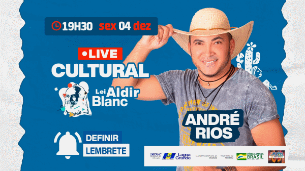 Um grande salto na valorização e apoio para a classe artística lagoagrandense, será dado logo mais a partir das 18h, com shows no palco do anfiteatro da Enoteca Francesco Luigi Pérsico, no distrito de Vermelhos com transmissão ao vivo, pelo canal you tube do departamento de Cultura, Turismo e Esporte (link: https://bityli.com/V6OTH). Se apresenta hoje: Banda Fantasias de Amor, Cantor André Rios em seguida pra fechar a noite sobe ao palco o cantor Marcio Caetano. As lives ‘show’ são impulsionadas pelos incentivos culturais da Lei Federal Nº 14.017/20, batizada de Lei Aldir Blanc de auxílio emergencial para músicos, cantores, grupos de dança, teatro, comunidade quilombola e espaços culturais e 25 grupos artísticos locais contemplados será de quase R$ 210 mil reais.
