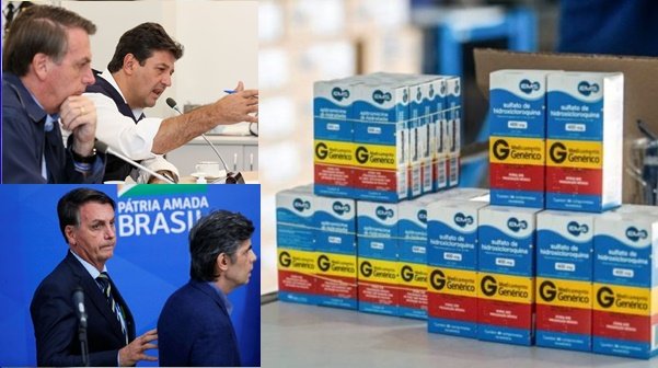 Aqui no Brasil o medicamento manteve-se nas manchetes diárias ao longo da semana. Nada de ciência. Em pauta, a defesa de Bolsonaro como solução para o problema. Por conta disto já caíram dois ministros da saúde. O último, o médico Nelson Teich, durou menos de 1 mês no cargo. Sua saída se deu exatamente pela pressão do presidente, e do gabinete do ódio, pela orientação para uso da cloroquina. Como não aceitou, saiu para dar lugar a mais um militar no governo: o paraquedista Eduardo Pazuello.