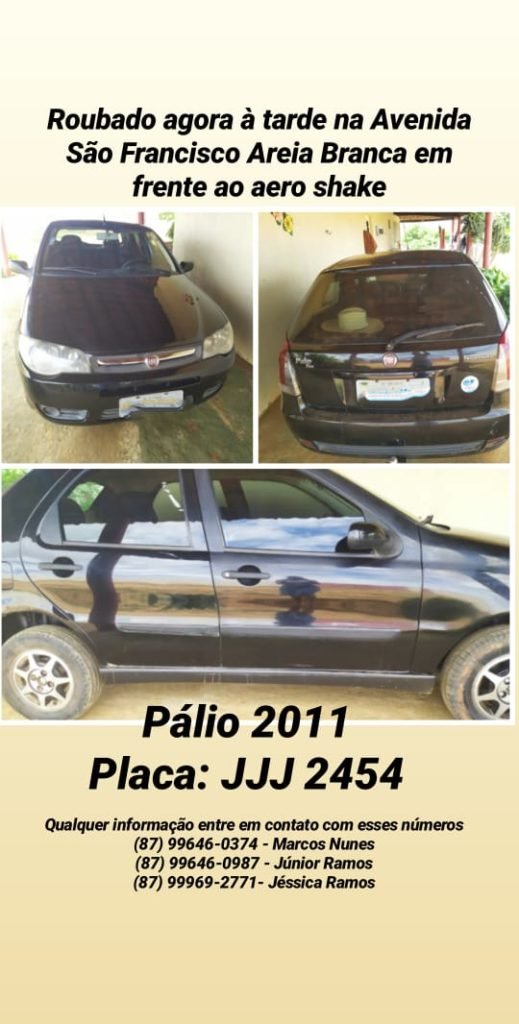 Atenção: Veículo roubado no bairro Areia Branca em Petrolina nesta segunda.