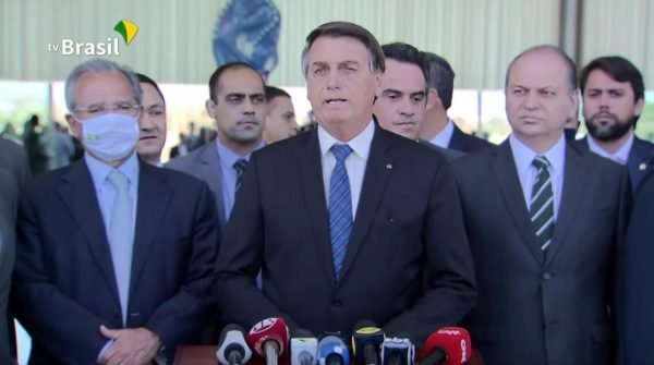 O presidente Jair Bolsonaro informou nesta terça-feira (1º) que o auxílio emergencial será de R$ 300 por mais 4 meses. O valor do benefício, criado para anteder trabalhadores informais que perderam renda em razão da pandemia do novo coronavírus, foi anunciado após reunião do presidente com ministros e parlamentares aliados no Palácio da Alvorada.