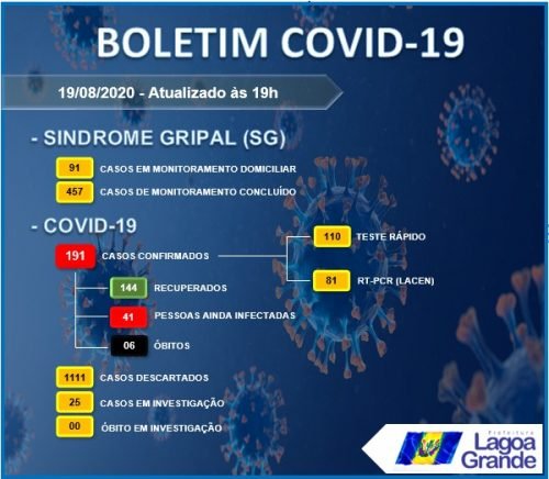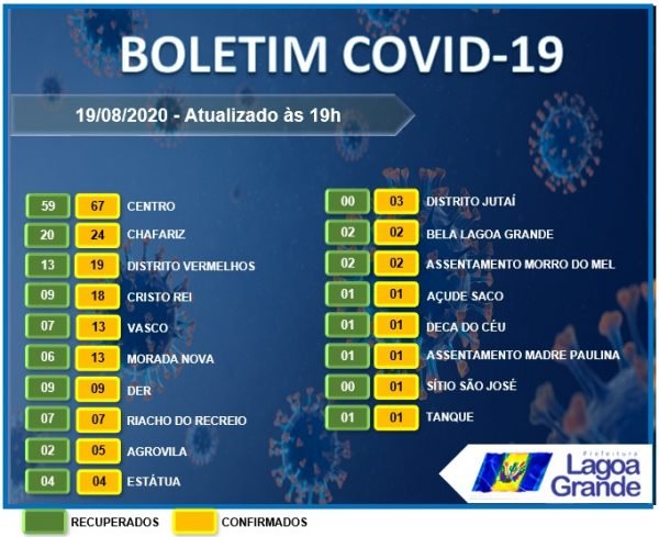 Boletim aponta 144 pessoas recuperadas da Covid-19 em Lagoa Grande. Veja a quantidade de curas por bairro