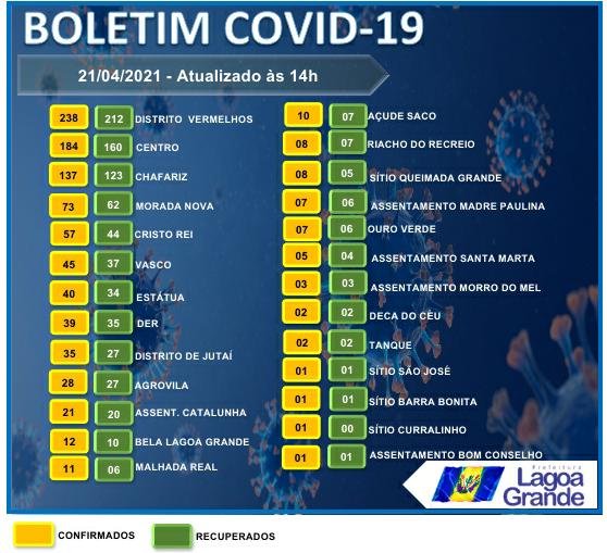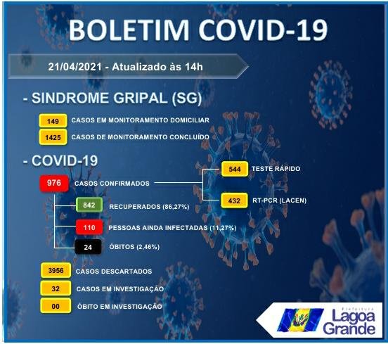 Boletim Covid é atualizado em Lagoa Grande, veja os números