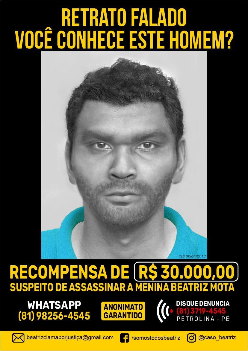 “Iniciaremos nossa caminhada neste domingo (05/12) às 04h da madrugada indo em direção ao Palácio do Campo das Princesas em Recife. Essa caminhada terá uma duração de aproximadamente 25 dias. A nossa intenção é sensibilizar o Governador a aceitar a parceira com os policias americanos e também avalizar nosso pedido de federalização do caso”, disse Sandro Romildo. Veja abaixo a foto digital do suspeito do crime.