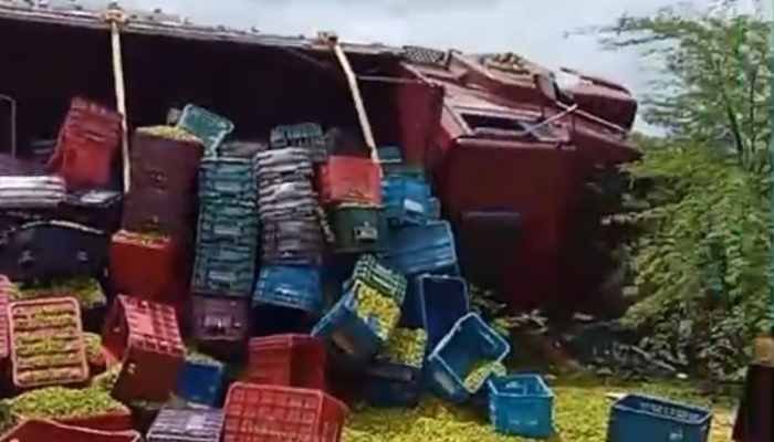 Caminhão com frutas tomba na PE – 574 próximo ao Assentamento Ouro Verde; VÍDEO