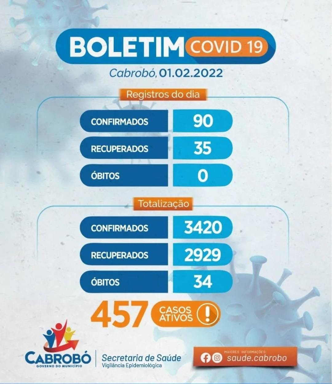 No acumulado do mês de janeiro o município registrou 702 novos casos. No mesmo período foram apenas 340 curas clínicas. No boletim divulgado pela prefeitura no primeiro dia de fevereiro, 457 pessoas continuam infectadas com o vírus. O registro diário tem preocupado os cabroboenses e serve como um alerta para os órgão públicos do município. Continua após a publicidade.