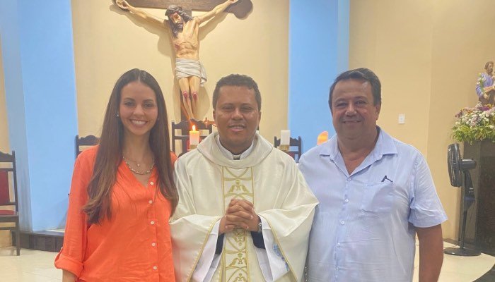 Catharina Garziera e Olavo Marques participam de Missa Canônica e dão as boas-vindas ao padre Evandro Santos