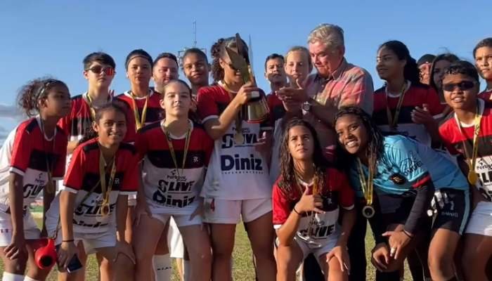 No torneio, o R4 Feminino de Juazeiro do Norte, do projeto do ex-jogador Ronaldo Angelim, ex-Flamengo, ficou em primeiro lugar na fase classificatória com 100% de aproveitamento. A final que garantiu o troféu ao R4 aconteceu ontem, dia 28/07, no Inaldão-Lirio Callou, em Barbalha-CE. ASSISTA ABAIXO