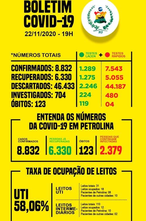2.379 pessoas continuam infectadas com a Covid-19 em Petrolina. Número de óbitos chegou a 123 no fim de semana