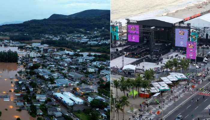 O contraste: enquanto milhares de pessoas sofrem com as chuvas no RS, milhões seguem para o show da Madonna no RJ