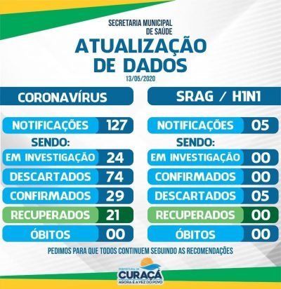 Curaçá registra um total de 29 casos confirmados para a COVID-19 e 21 curas clínicas