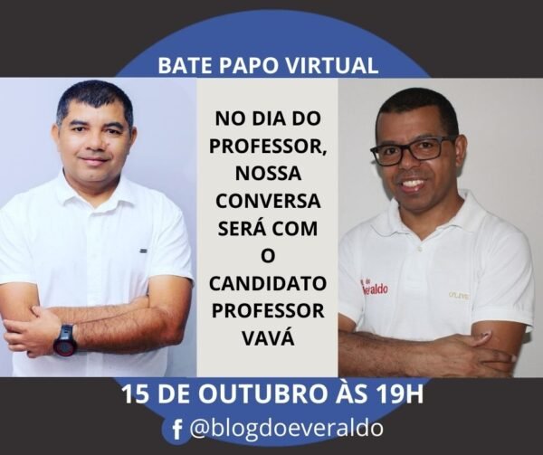 Em tempos de pandemia e com a falta de uma vacina, o distanciamento social é o melhor remédio para combater o vírus. Mas como viver distanciados em época de eleição, onde os candidatos estão correndo os quatro cantos do município para apresentar suas propostas? Realmente é difícil. Pensando nisso, o Blog do Everaldo fará na próxima quinta-feira (15), Dia do Professor, a partir das 19h, o nosso 3º BATE PAPAO VIRTUAL com o candidato do SOLIDARIEDADE, Professor Vavá. Imperdível!