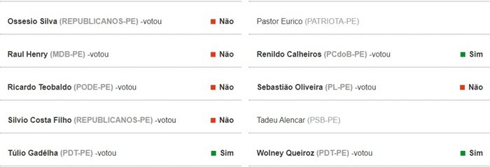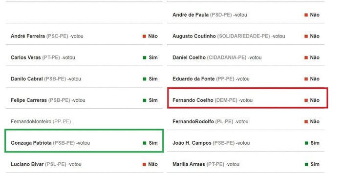 Por 309 contra e 123 a favor, os deputados optaram na quinta-feira (16), pela não continuidade do auxílio. o Blog do Everaldo foi atrás dos nomes dos Deputados Federais do estado de Pernambuco que votaram contra e a favor à prorrogação do Auxílio Emergencial. Destacamos os dois Deputados Federais da cidade de Petrolina, Fernando Filho do DEM e Gonzaga Patriota do PSB. Fernandinho, assim como sua votação nas reformas, mais uma vez votou contra uma proposição que beneficia milhares de brasileiros que vivem em situação de vulnerabilidade. Já Gonzaga manteve sua postura em defender essa população e votou a favor. (Veja a baixo como foi o voto de cada parlamentar pernambucano.)