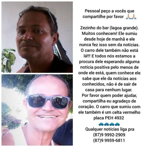 Gente procurando gente: Família procura Zezinho do Bar que estar desaparecido