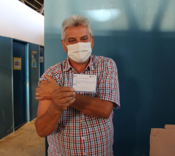 O prefeito de Lagoa Grande, Vilmar Cappellaro (MDB), foi imunizado com a primeira dose da vacina contra a Covid-19 nesta terça-feira (8). A aplicação da dose foi no PSF-7, no bairro Morada Nova. Com 58 anos, Vilmar esperou o encerramento da imunização de cada etapa determinada pelo Ministério da Saúde ao anunciar o plano preliminar de vacinação para a Covid-19 no Brasil.