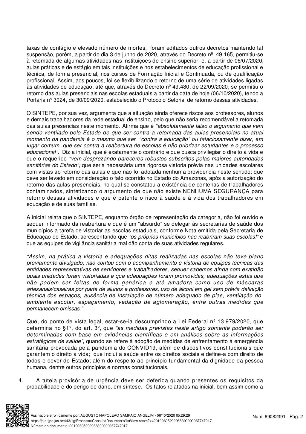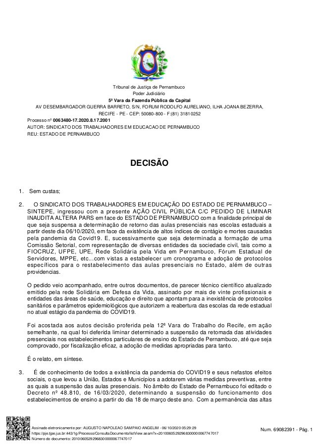 Na segunda (5), o TJPE havia ordenado que o sindicato não começasse a paralisação, considerando que a motivação do movimento “não se apresenta legítima”, já que não havia risco adicional à categoria e que o protocolo sanitário de retorno às aulas presenciais tem base científica.