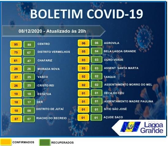Lagoa Grande registra alta no número de casos ativos da Covid-19. Chafariz, Centro e Vermelhos registram maiores números