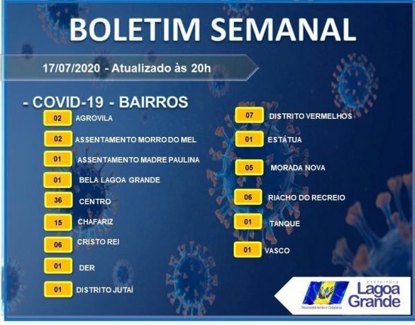 Número da Covid-19 em Lagoa Grande sobe para 86. Veja a lista dos bairros atualizados com os casos confirmados