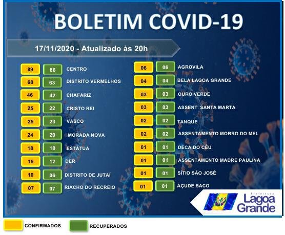 Número de óbitos por Covid-19 sobe para 9 em Lagoa Grande. 19 pessoas continuam infectadas