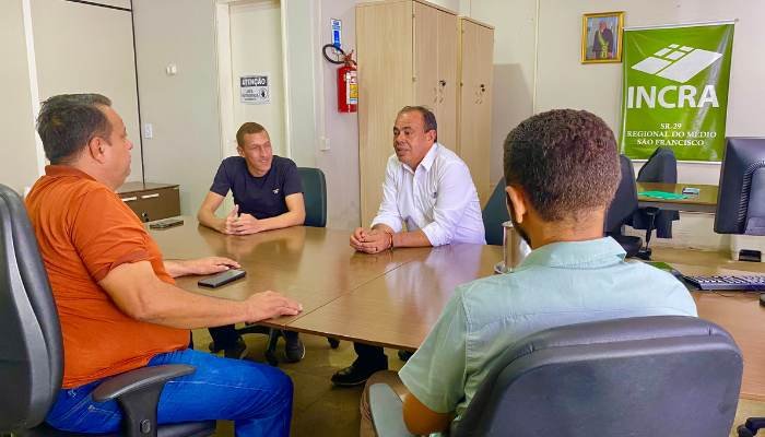 Nesta quinta-feira (9), o vice-prefeito de Lagoa Grande Olavo Marques, juntamente com o secretário de agricultura, Ítalo Ferreira, esteve em Petrolina, em reunião com o gestor da Superintendência Regional do Incra no Médio São Francisco, José Cláudio da Silva e com o dirigente regional do MST, Florisvaldo.