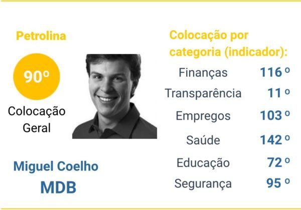 Com a mudança o prefeito de Petrolina Miguel Coelho saiu da 141ª e assumiu a 90ª posição. A mudança entre os dois prefeitos aconteceu por posicionamento em dois fatores pesquisados, Transparência e Emprego, os demais, Finanças, Saúde, Educação e Segurança, continuaram os mesmo. Mesmo assim a prefeitura de Lagoa Grande está muito bem avaliada comparando a cidade de Petrolina.
