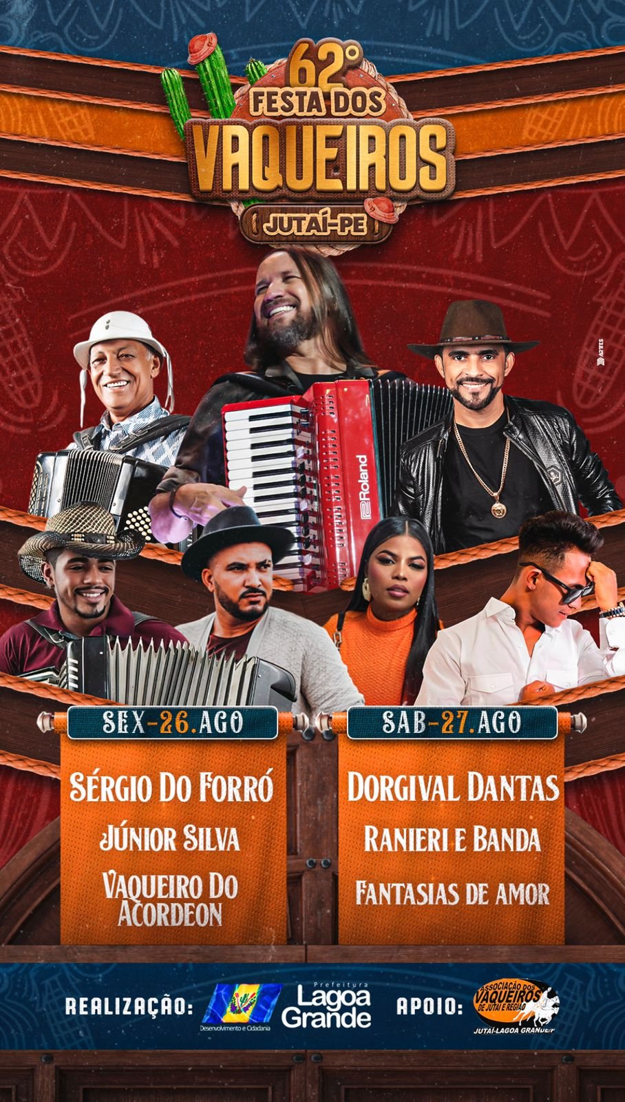 Prefeitura de Lagoa Grande divulga atrações da 62ª Festa dos Vaqueiros de Jutaí com Dorgival Dantas, Sérgio do Forró e outras atrações; confira programação