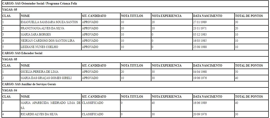Prefeitura e Lagoa Grande faz nova convocação do processo seletivo. Veja a lista dos convocados