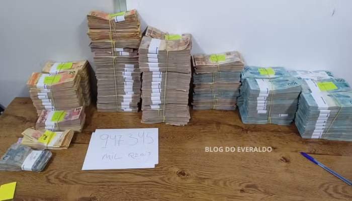 Segundo a Polícia Rodoviária Federal (PRF), o dinheiro – R$ 947.345,00 em dinheiro vivo, ao todo – foi encontrado dentro do carro de um casal durante uma abordagem na BR-226. VÍDEO LOGO ABAIXO