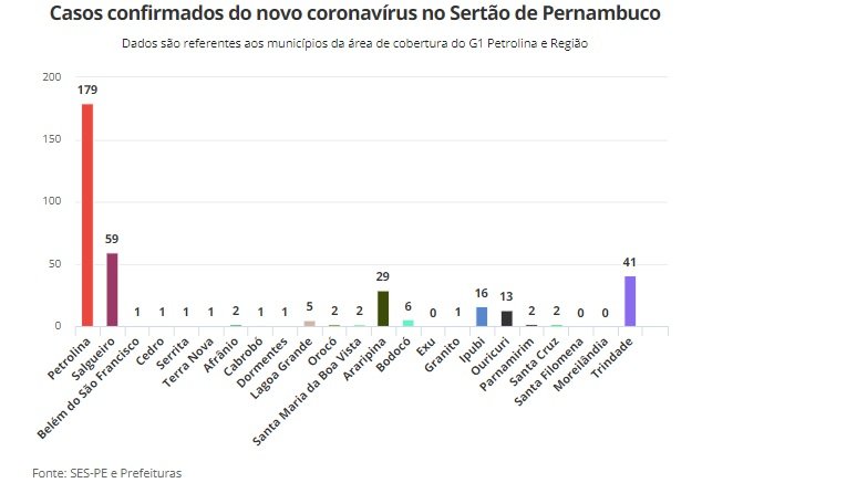 O estado de Pernambuco chegou 1.925 mortes e 23.911 confirmações, de acordo com o boletim divulgado nesta quarta-feira (20). Na área de cobertura do portal G1 Petrolina e Região, houve alteração no número de casos nos municípios de Salgueiro e Petrolina. Eles estão, respectivamente, com 179 e 59 infectados pela Covid-19.