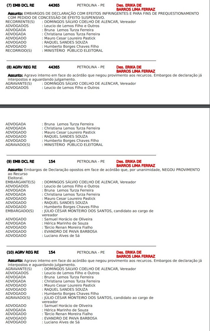 Vale destacar que Domingos foi condenado, no início de julho deste ano, por unanimidade, à perda do cargo de vereador. O parlamentar foi destituído do cargo, mas retornou, no dia 05 de agosto, após uma decisão do Tribunal Superior Eleitoral (TSE), que determinou a manutenção do edil na Câmara Municipal até o julgamento e publicação de recursos pendentes no TRE-PE.