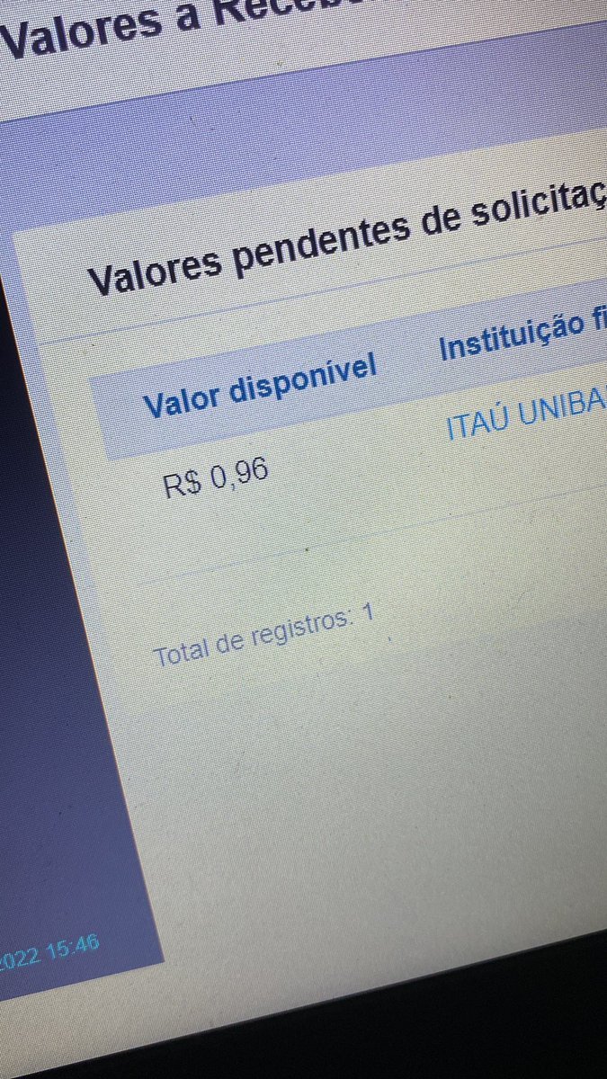 As pessoas que encontraram a feliz mensagem de que tinham, de fato, algo a receber passaram janeiro e fevereiro fazendo planos para a graninha. Mas o tombo veio. A Antônia Campos, que mora em Natal, planejava comprar um carro, mas levou um susto ao ver que só tinha R$ 2,82 na conta. E ela ainda está melhor que muita gente. Várias pessoas consultaram o serviço nesta segunda (7) e encontraram menos de R$ 1 disponível para resgate.