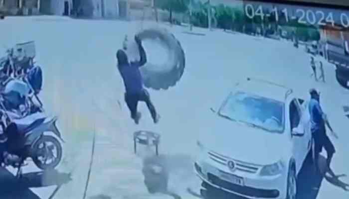 Imagens de câmeras de segurança captaram o momento em que Jailton Feitosa, borracheiro de Águas Belas, no Agreste de Pernambuco, estava trabalhando enchendo o pneu de um caminhão. O caso aconteceu durante a manhã da segunda-feira (4), em um estabelecimento do município (veja vídeo abaixo).