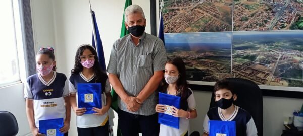 Vilmar Cappellaro recebe visita de alunos da Escola Inácia Rita no gabinete e conversa sobre Lagoa Grande, gestão e outros temas.