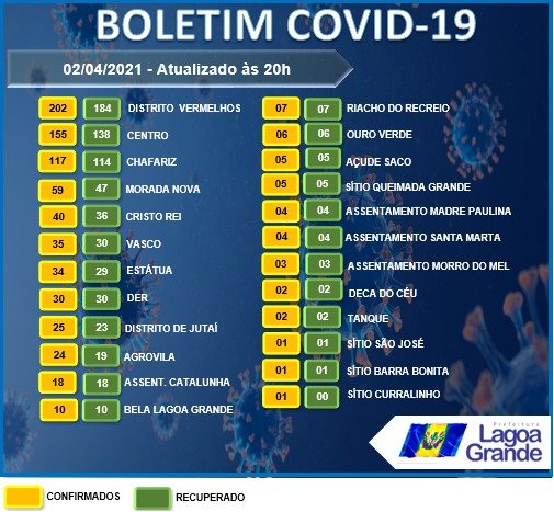 Boletim: Lagoa Grande registra a 19° vítima da Covid-19