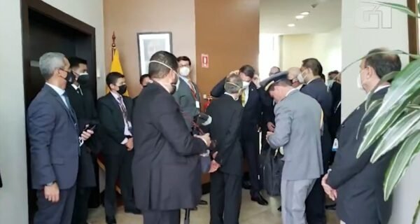 Ao se preparar para a cerimônia oficial de despedida do Equador nesta segunda-feira (24), o presidente Jair Bolsonaro comentou com assessores que precisava colocar máscara de proteção contra a Covid porque estava “dando mau exemplo”.