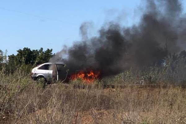 Carro pega fogo na PE – 574, na Malhada Real, interior de Lagoa Grande; ASSISTA