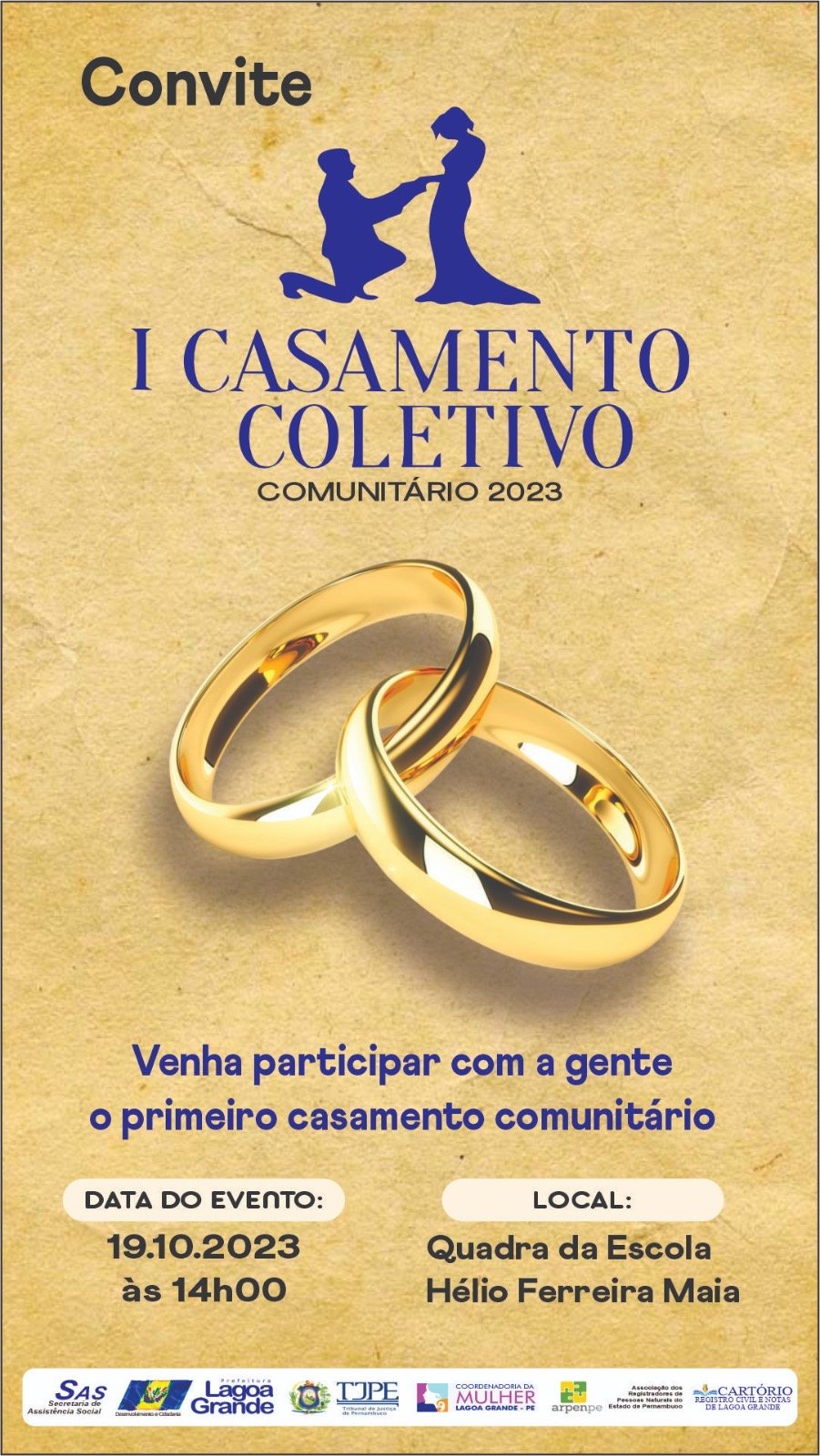 Casamento Coletivo acontece nesta quinta (19) em Lagoa Grande
