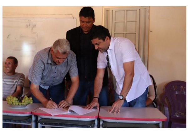 Foto: Izael Cordeiro. O prefeito Vilmar Cappellaro, o Secretario de Agricultura, Reginaldo Alencar e o Superintendente do INCRA Bruno Medrado, assinaram nesta quarta-feira (15), à ordem de serviço para recuperação...