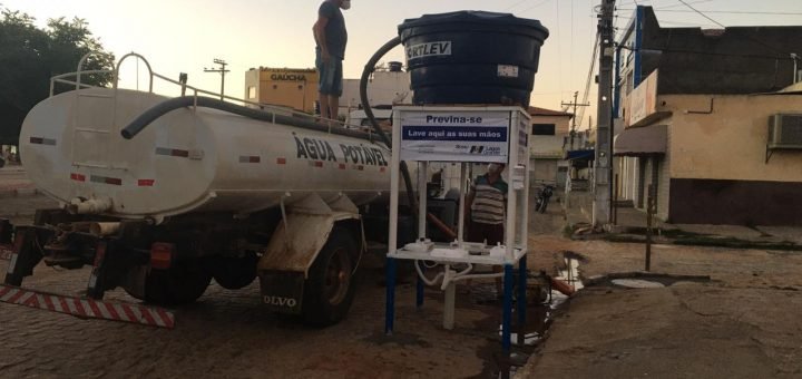 Prefeitura de Lagoa Grande instala pias para higienização das mãos próximo da Lotérica e Banco do Brasil