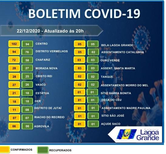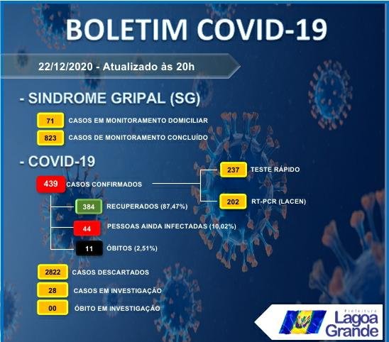 Com seis novos casos, 44 pessoas estão infectadas com a Covid-19 em Lagoa Grande