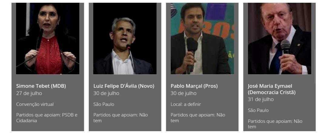 Veja, abaixo, o calendário completo de convenções e quem são os pré-candidatos.